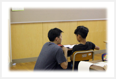 活動概要 | 「基礎学力の向上をめざす」小学校3~6年生の児童に対して放課後に学習支援を行う。支援は主に「国語科」「算数科」の自習プリントを使用し、小学校の担当指導者の指示のもと、個別に行う。支援活動は春学期・秋学期ともに10回程度。 |