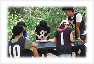 活動概要 | 小学生を対象とした野外活動プログラムに参画し、サポートスタッフとしての経験を積んだ後、最後は自らプログラムを企画・立案し、実施・運営する。 体験学習①「逃走中!」 参加者の子ども達との関わりを通して、子どもの身体的・心理的・社会的な現状とその背景について学ぶ。 体験学習②「ウォーターバトル!」 子ども心身の成長のために、そのような野外活動プログラムが求められているかを考える。 体験学習③「自主企画プログラム」 現在の子どもを取り巻く現状を踏まえた上で、子どもの心身の成長に寄与する野外プログラムを実施する。 |