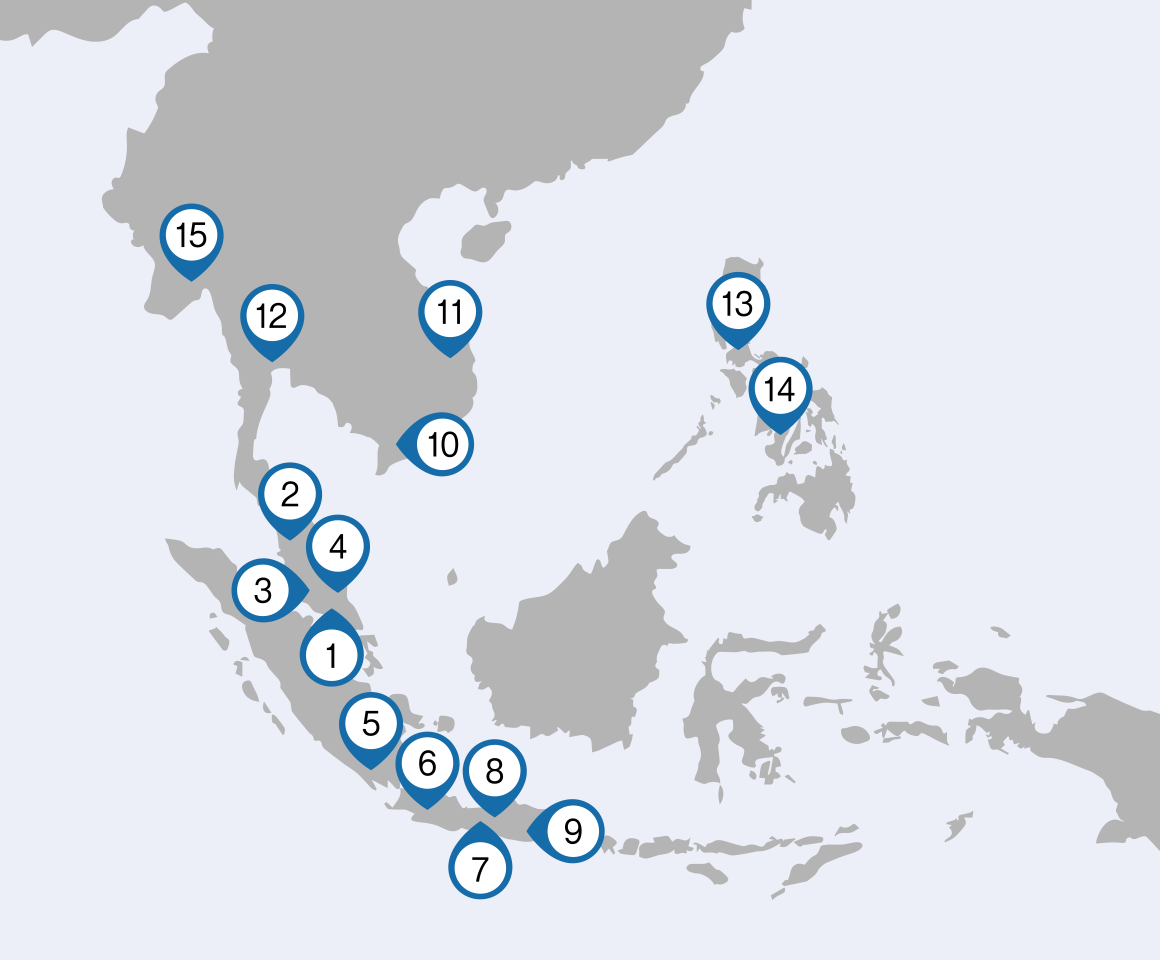 ACPコンソーシアムには東南アジアの6か国の主要な15大学が加盟しています。