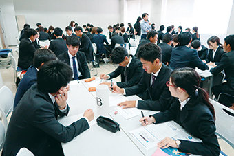 早期内定を目指す2年生を対象としたセミナーです。自己分析から面接やグループディスカッションの実戦練習まで、就職活動で必要となるノウハウをつめこんだ実践的なプログラムとなっています。また早期内定を獲得した4年生の体験談を聞く時間も設けています。