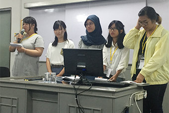 この現地研修の最大の特徴は3大学学生の混成による数人単位のグループワークを中心として実施したことです。インドネシアと日本の双方の災害経験や教訓を踏まえつつ、関連講義や現地調査をもとに、グループ内で研究テーマを設定し、詳細調査を実施し、議論を重ねながら調査結果を取りまとめていきました。グループワーク最終日には、グループごとの成果発表を行い、UGMやUAJYの専門家からもアドバイスを受けました。