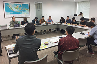 その後、ジャカルタに移動して、JICAインドネシア事務所で防災・減災分野での日本の国際協力の現状について詳しく学ぶとともに、インドネシアで事業展開しているTOA株式会社の工場を視察し、日本企業の海外での事業展開における課題などについても学びました。