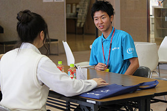 経営学科では先生方による学部紹介やミニ講義を行いました。また学生による体験ブースを行いました。「経営者になろう〜壊れかけの遊園地を立て直せ!〜」というテーマで経営学科ならではの方法で遊園地を立て直す改善策を考えていただきました。クイズを取り入れた体験ブースだったので、留学生の方も一緒にクイズをして盛り上がることが出来ました。