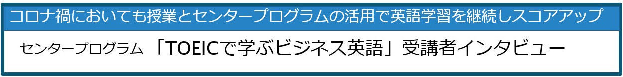 現在開講中のセンタープログラムのひとつである、「TOEIC で学ぶビジネス英語」担当の百濟正和先生と、昨年度より TOEIC 対策のセンタープログラムを受講して確実に英語力をつけてきた、英語コミュニケーション学科2年生 高畑昌暉さんとの対談をご紹介しています。