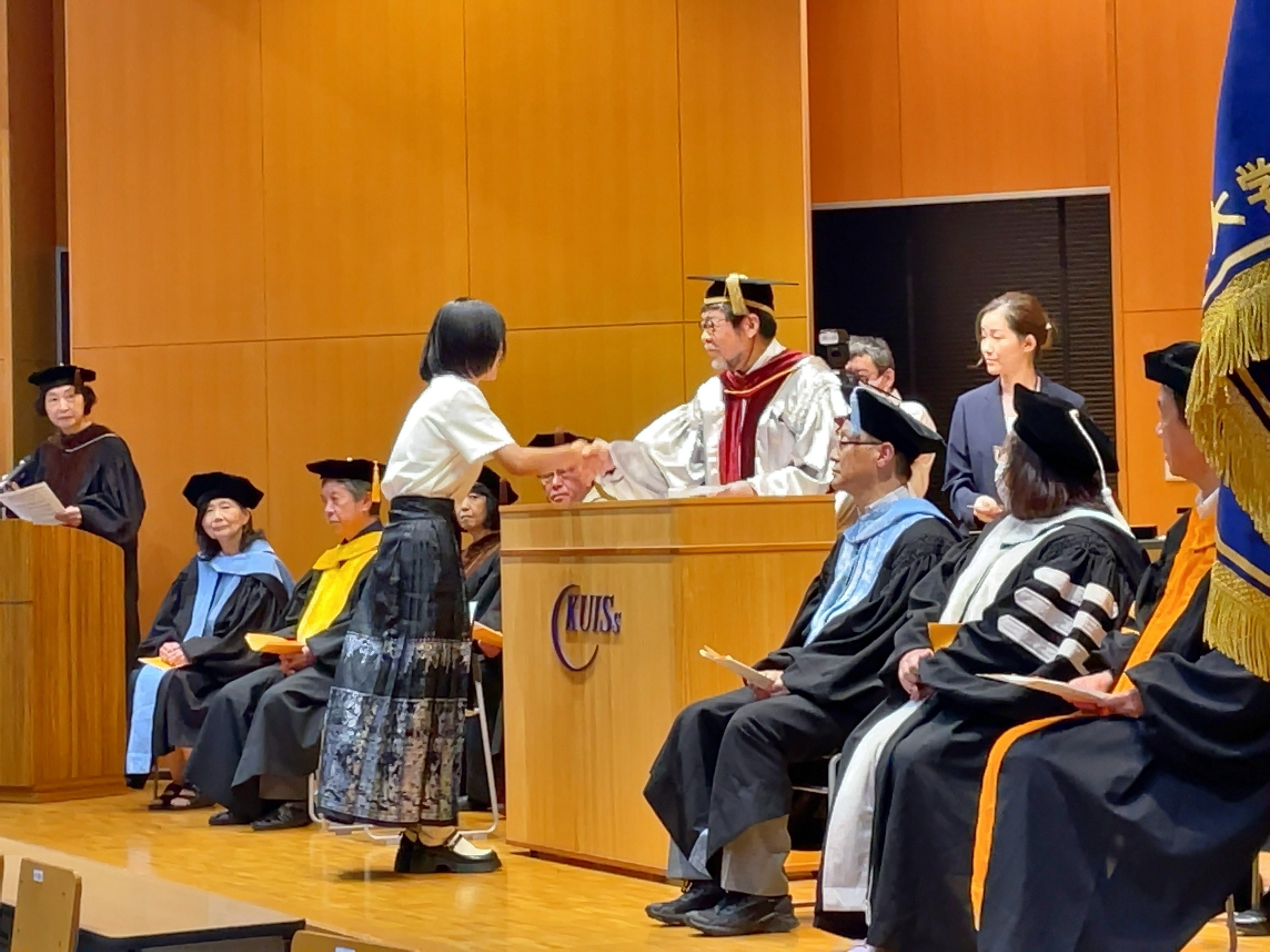 新入生代表の、邰 阿如娜さん(経営学部 経営学科)は、「新入生として戸惑うこともあるかもしれないが、日本の文化や風景に触れながら新しい生活に慣れていき、実在力を高めるために自身の目標を設定し全力を尽したい。」と抱負を述べ、「新しい仲間に出会い、ここでの学びや経験が今後忘れることない宝物になるよう時間と努力を惜しまずに、関西国際大学の一員として新たな一歩を踏み出せることを誇りに思います。」と熱い言葉で締めくくりました。