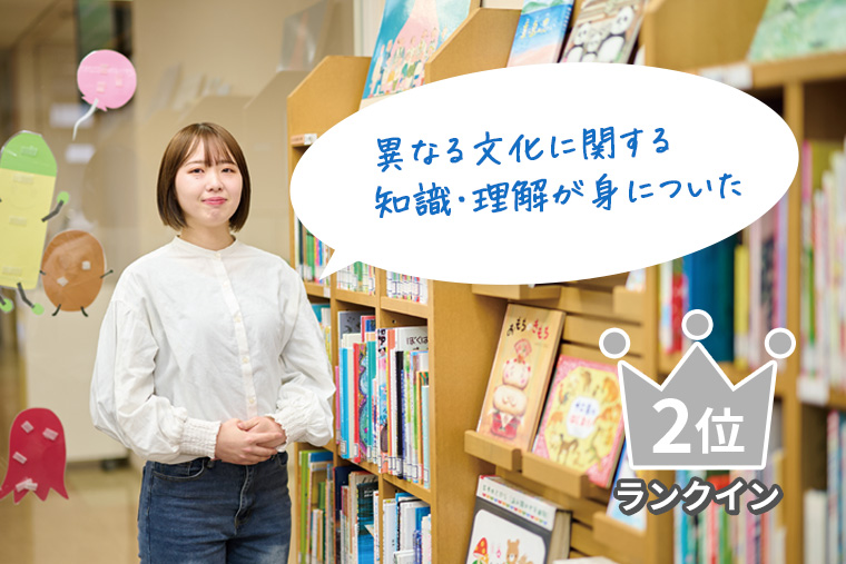 本学には、多くの留学生が在籍しており、協力して授業や課題に取り組む機会があります。コミュニケーション能力が身につき、自分の考えに根拠を持って話せるようになってきたと実感しています。今後は長期留学やTOEICにも挑戦し、自分の好きな英語力を磨いて夢を叶えたいです。