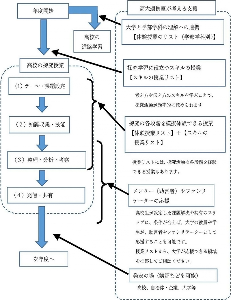 大学教員の授業や研究、会議の予定などにより、高等学校からのご要望に完全にお応えすることはできないかもしれませんが、対面だけではなく、オンラインでの連携というスタイルも検討しながら、ご要望にできるだけ近い形での連携を調整させていただきます。そして高等学校の皆様と、よりよい高大連携を進めてまいりたいと考えております。どうぞご活用ください。