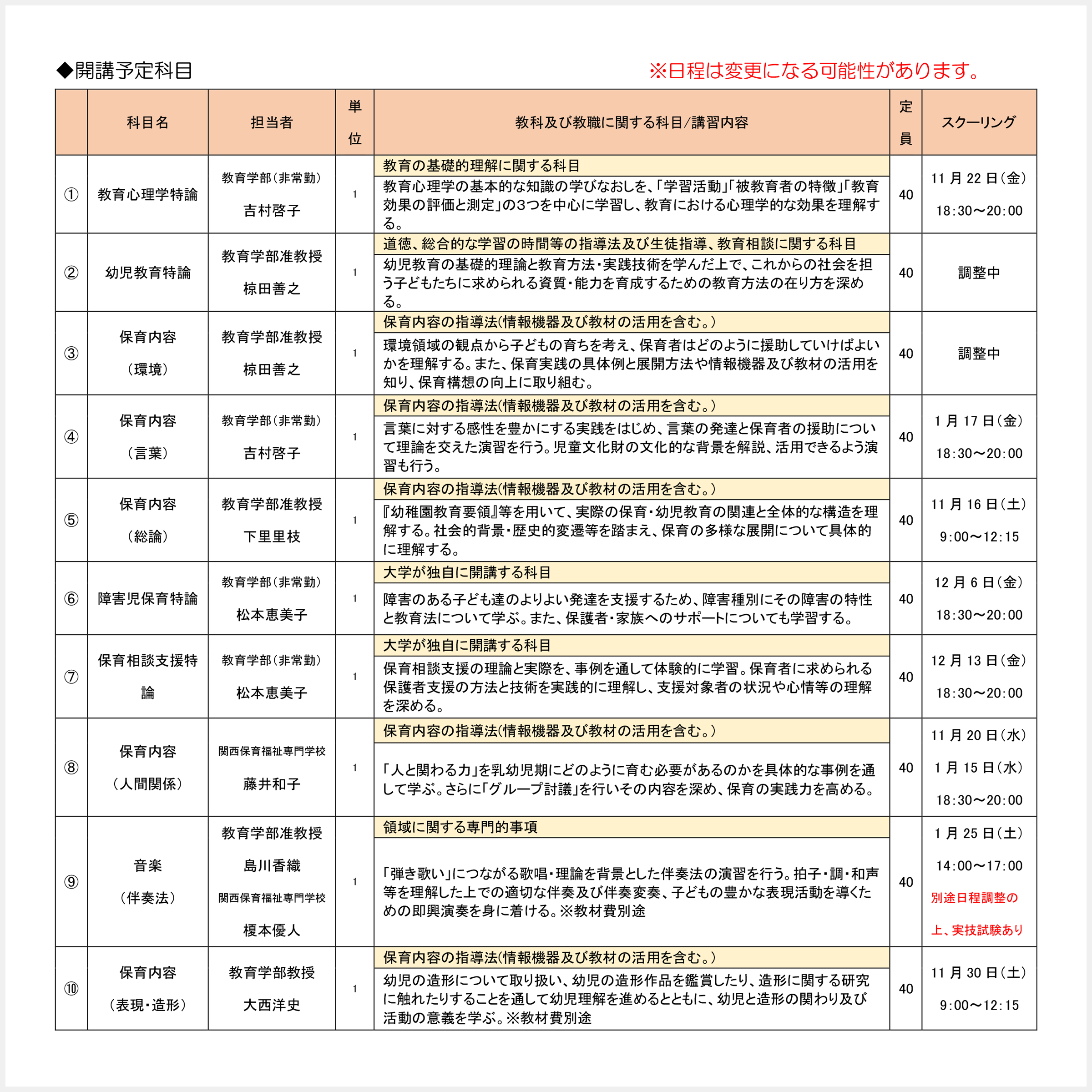 関西国際大学 幼稚園教諭免許法認定講習のご案内