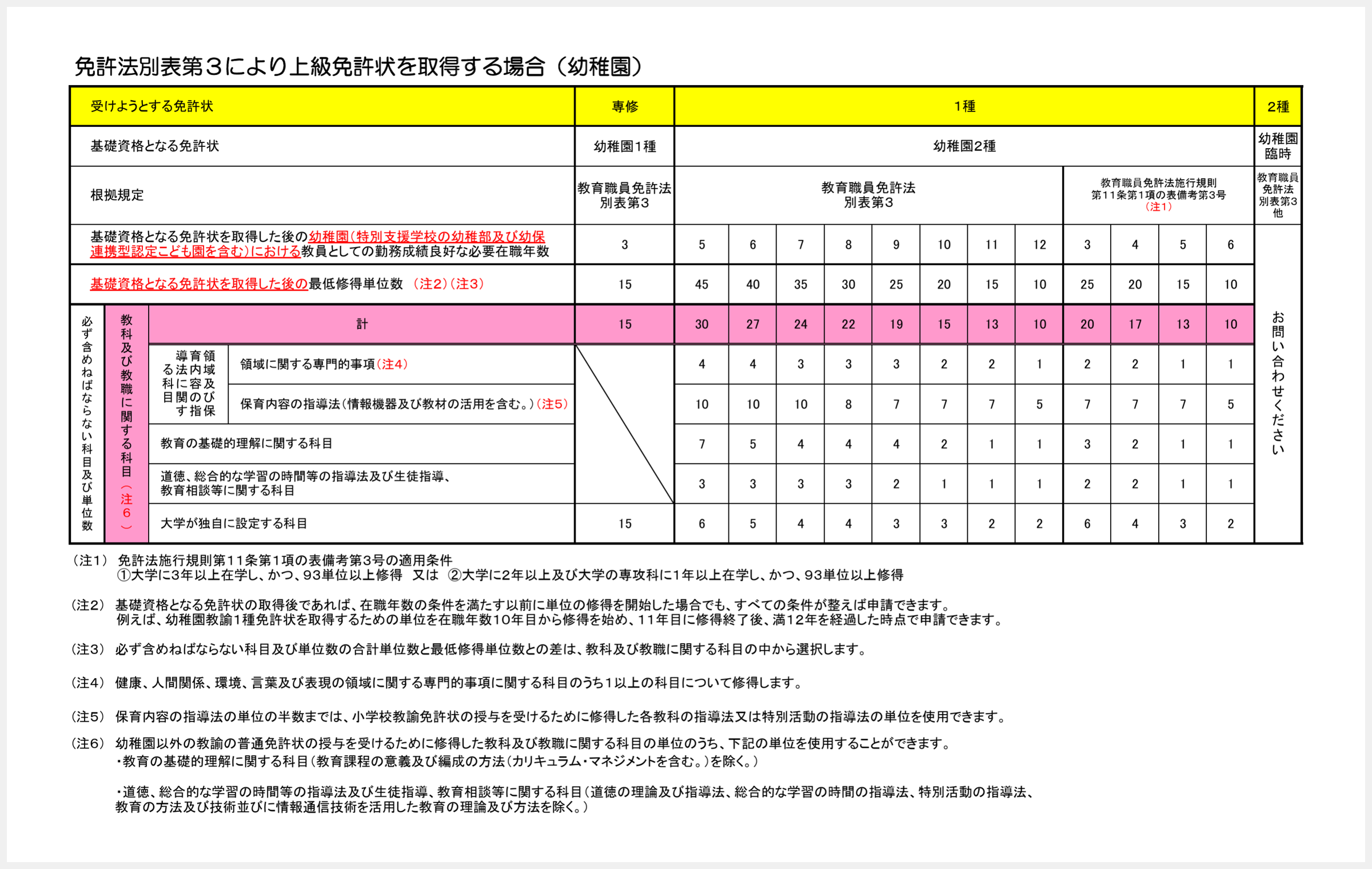(※教育職員免許法では、2種免許状をお持ちの方には、1種免許状を取得する努力義務が規程されています。)