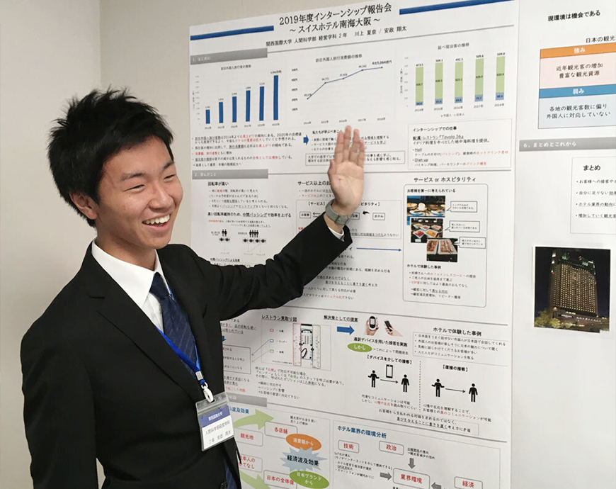 関西国際大学の課題探求型コーオプ・プログラムは、5~10日間の就業体験を通じ、あらかじめ設定した課題に対し解決方法を探っていくものとなります。実施日程や評価項目、またどのような課題を設定するか等については、事前に担当教員が入念に相談をさせていただきます。