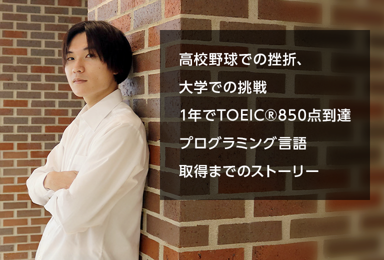 学修支援のシステムが手厚く、勉強の方法をいつでも聞くことができました。毎学期、アドバイザー教員と面談し、スモールステップを積み重ねて2年生の後期にはTOEICのスコアが850点になりました。